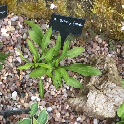 Miniature (AHS) Hosta. Ht. about 6”. Narrow elongated leaves (5”x1”). H. longissima seedling. Lavender flowers. Scarce. Savory 1985. £10.00.